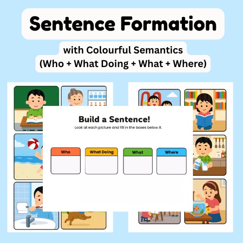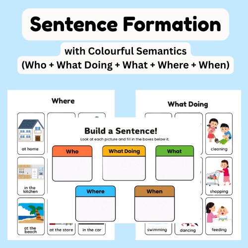 Sentence Formation: Colourful Semantics (Who + Doing What + What + Where + When)