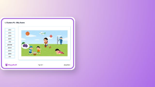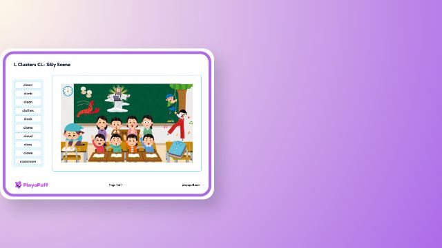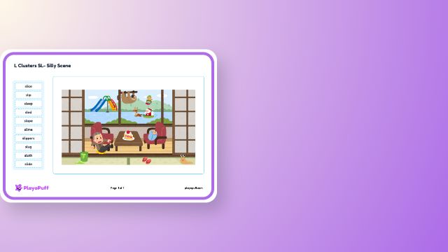 Supports speech sound articulation skills by encouraging children to describe silly scenes using SL cluster words.