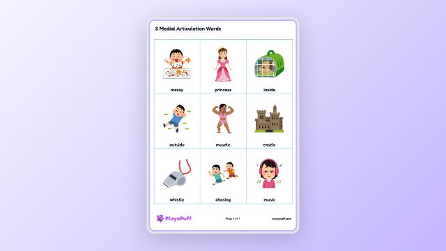 Worksheet: S Medial Articulation Words | PlayoPuff
