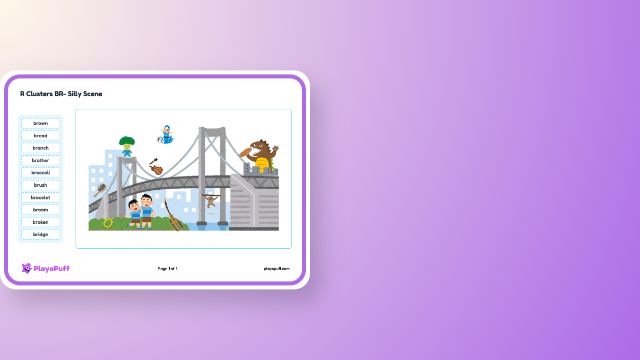 Supports speech sound articulation skills by encouraging children to describe silly scenes using BR cluster words.