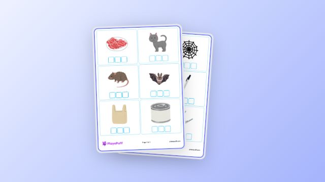 Worksheet: CVC Sound Boxes Mixed Vowel (Word Building) | PlayoPuff