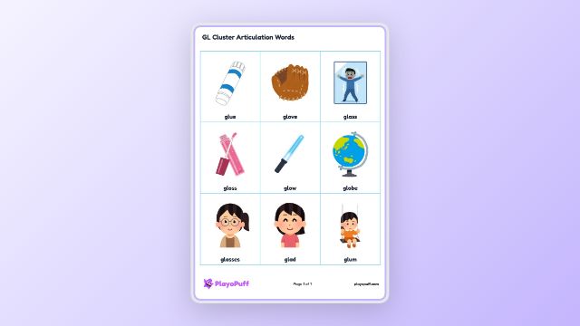 Worksheet: GL Cluster Articulation Words | PlayoPuff