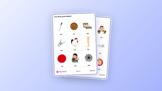 Worksheet: CVC Word Cards Middle E | PlayoPuff