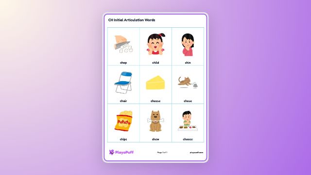 Learners practice identifying and recognizing words that begin with the initial ch sound by finding matching pictured items.