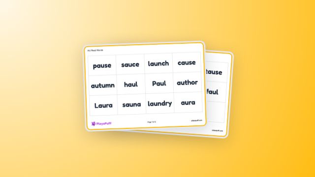 Practice reading real and nonsense words with the au sound, to build phonics, decoding, and word recognition skills.