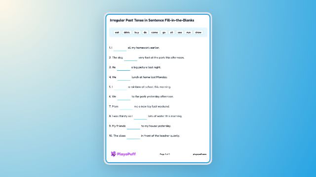 Irregular Past Tense in Sentence Fill-in-the-Blanks