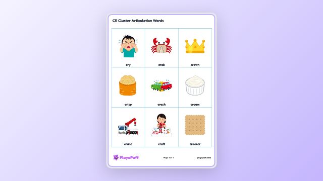 Worksheet: CR Cluster Articulation Words | PlayoPuff
