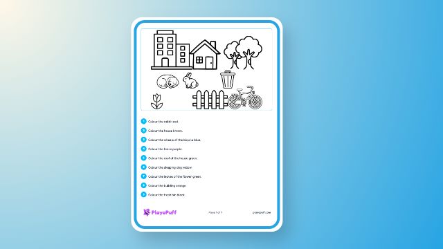 Listen and Colour Following Instructions Park Scene | PlayoPuff