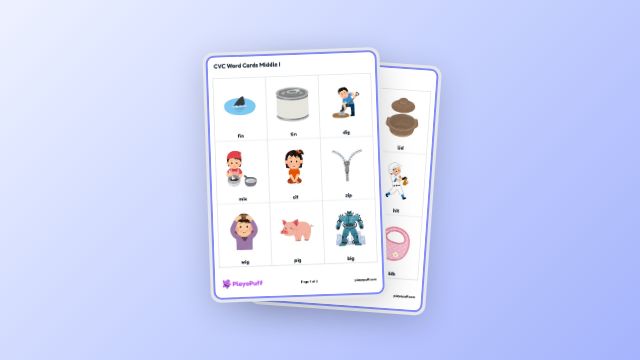Worksheet: CVC Word Cards Middle I | PlayoPuff