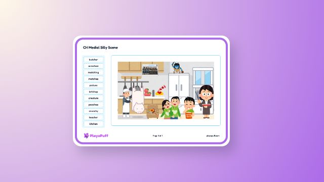 Practice identifying and using final CH words in context to build phonics, articulation, and speech sound awareness.