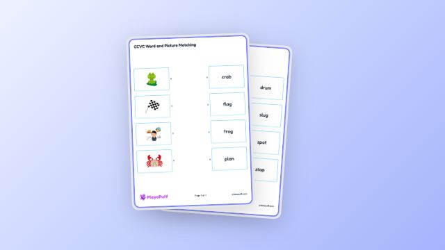 Worksheet: CCVC Word and Picture Matching | PlayoPuff