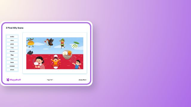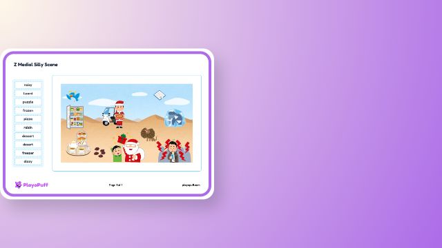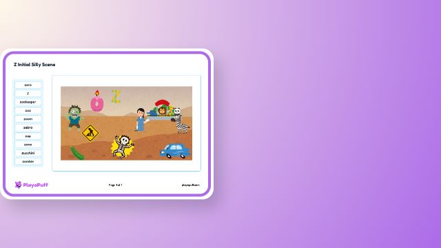 Supports speech sound articulation skills by encouraging children to describe silly scenes using Z initial words.