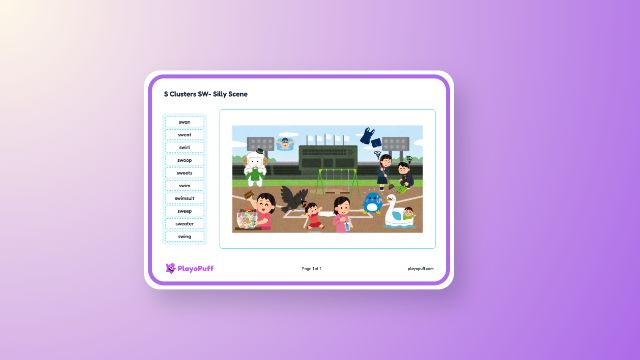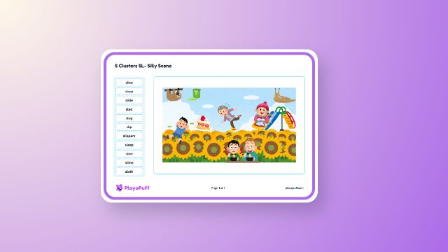 Students practice identifying and using SL- cluster words to build vocabulary and connect words with a matching scene.