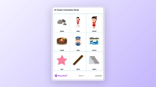 Worksheet: ST Cluster Articulation Words | PlayoPuff