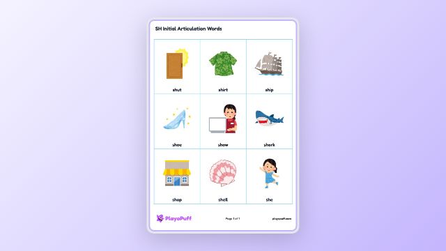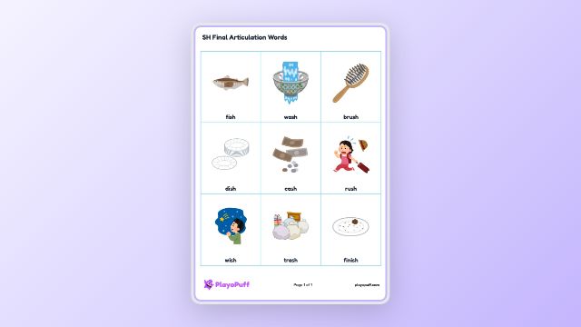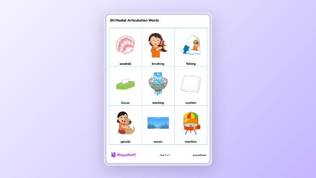 Worksheet: SH Medial Articulation Words | PlayoPuff
