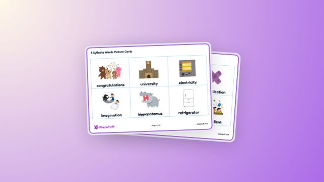 Students practice identifying and reading five-syllable words while building vocabulary and syllable awareness.