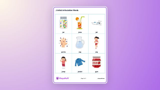 J Initial Articulation Words | PlayoPuff