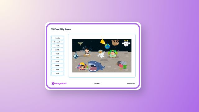 Practice reading and spelling words with th while building vocabulary through a silly scene activity.