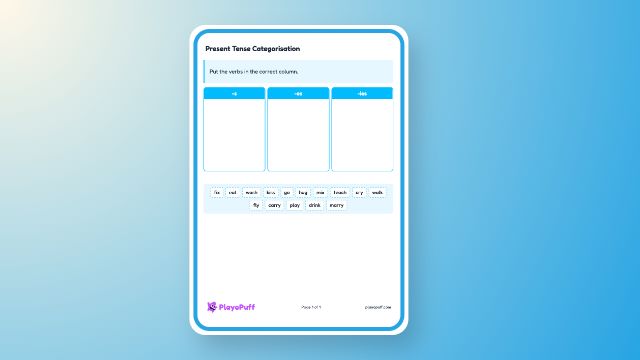 Present Tense Ending Categorisation Worksheet