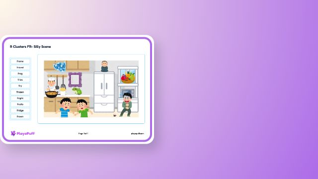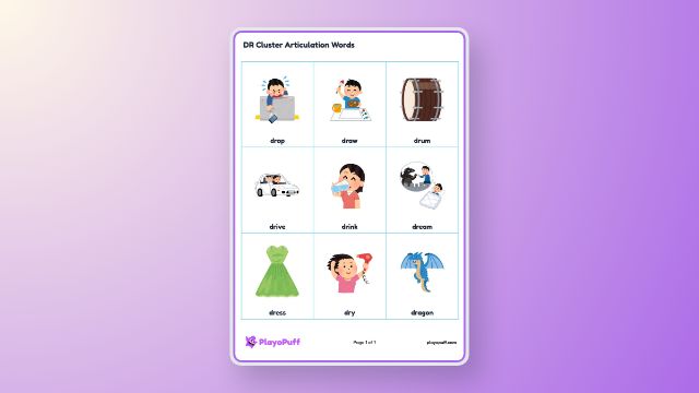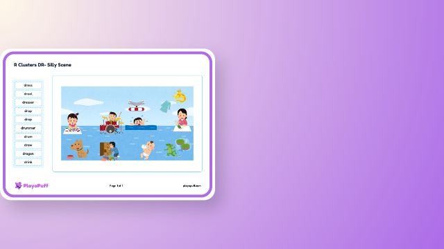 Supports speech sound articulation skills by encouraging children to describe silly scenes using DR cluster words.