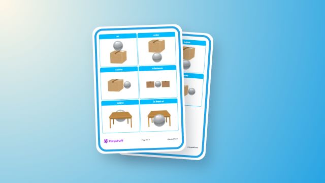 Learners practice using positional prepositions to describe where objects are in relation to one another.