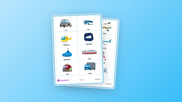 Worksheet: Transport Picture Cards | PlayoPuff