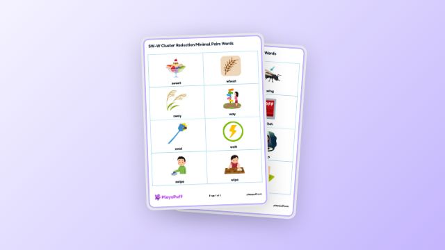 Worksheet: SW-W Cluster Reduction Minimal Pairs Words | PlayoPuff