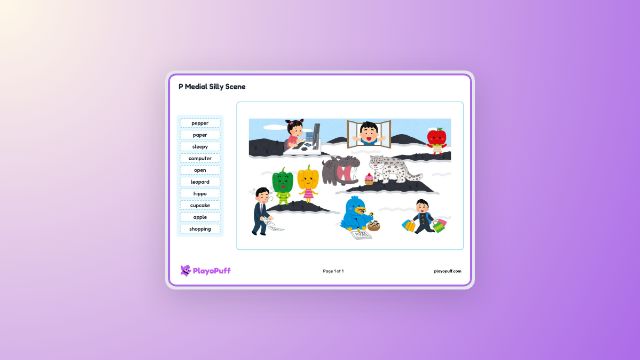 Learners practice identifying words with medial p sounds by finding and recognizing familiar vocabulary.