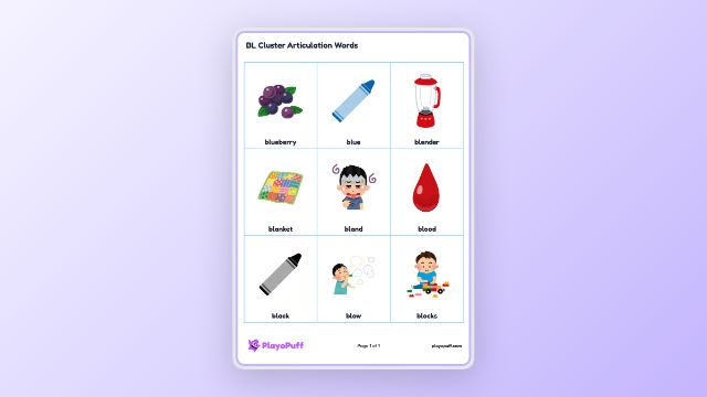 Worksheet: BL Cluster Articulation Words | PlayoPuff