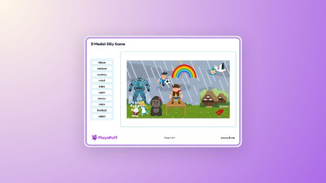 Learners practice identifying and recognizing words with the letter b in the middle by finding matching pictured and written items.