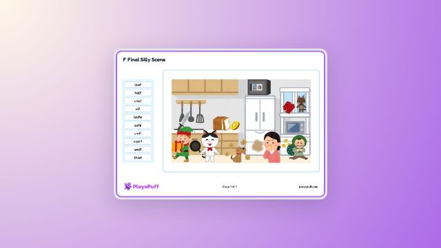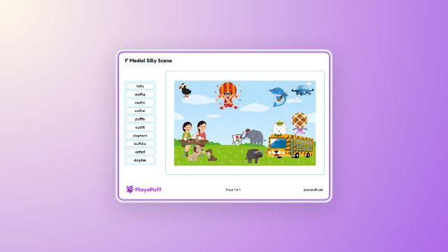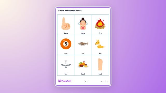 Learners practice identifying and recognizing words that begin with the letter F by finding matching beginning sounds in familiar vocabulary.