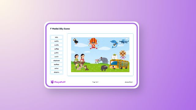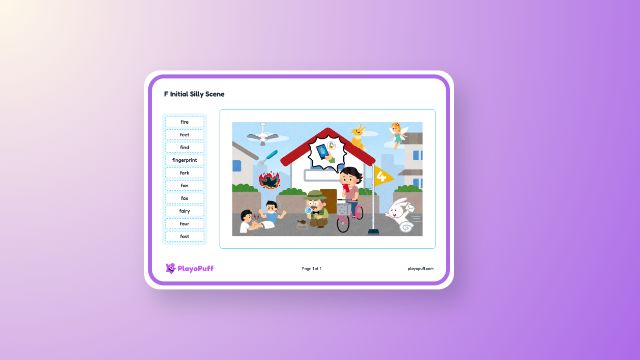 Practice identifying and using words that begin with F by connecting picture clues to relevant vocabulary.