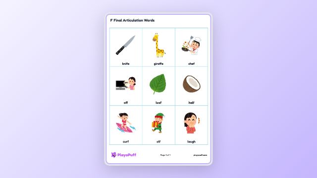 Worksheet: F-B Stopping Minimal Pair Words | PlayoPuff