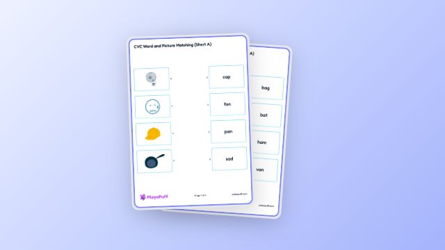 Worksheet: CVC Word and Picture Matching (Short I) | PlayoPuff