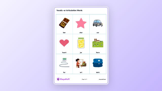 Vocalic -ar Articulation Words