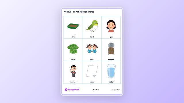 Vocalic - er Articulation Words
