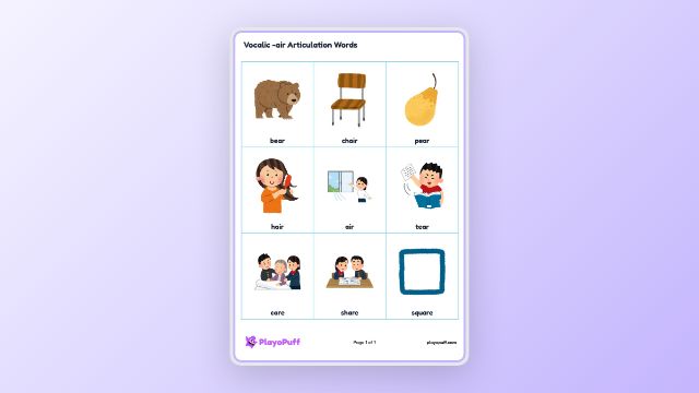 Worksheet: Vocalic -air Articulation Words | PlayoPuff