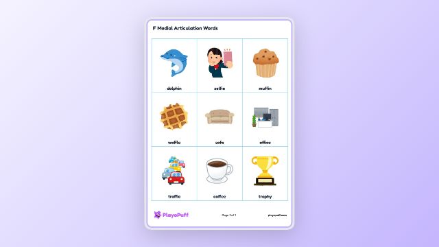 Worksheet: F Medial Articulation Words | PlayoPuff